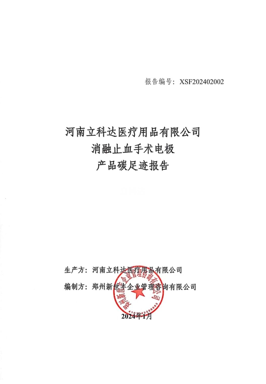 河南立科达消融止血手术电极产品碳足迹报告